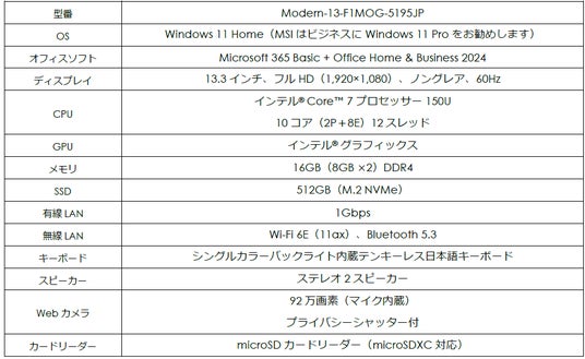 ・Modern 13 F1Mシリーズ製品ページ:https://jp.msi.com/Business-Productivity/Modern-13-F1MX