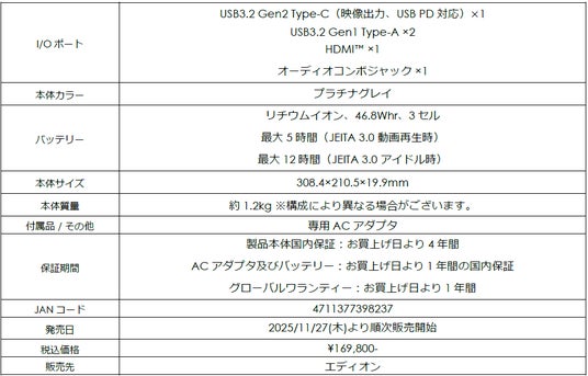 この度、エムエスアイコンピュータージャパン株式会社は、携帯性とパフォーマンスを両立したスタンダードノートPCの13.3インチモデル「Modern 13 F1M」シリーズより、エディオンオリジナルモデル「e angle select」として展開する「Modern-13-F1MOG-5195JP」を2025年11月20日(木)より発売いたします。