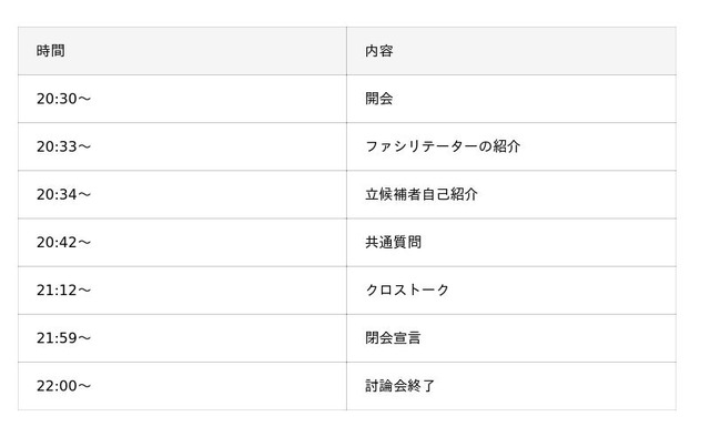 本企画は、候補者の政策・主張・人柄をオンラインで公平に比較できる機会を提供し、投票率が伸び悩む20~40代の政治参加を後押しすることを目的としています。