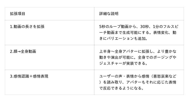 単なる技術のアップデートに留まらず、常に社会の情勢や人々のニーズを捉え、自己実現に寄り添う”伴走型AIアバター”のスタンダード化を目指してまいります。