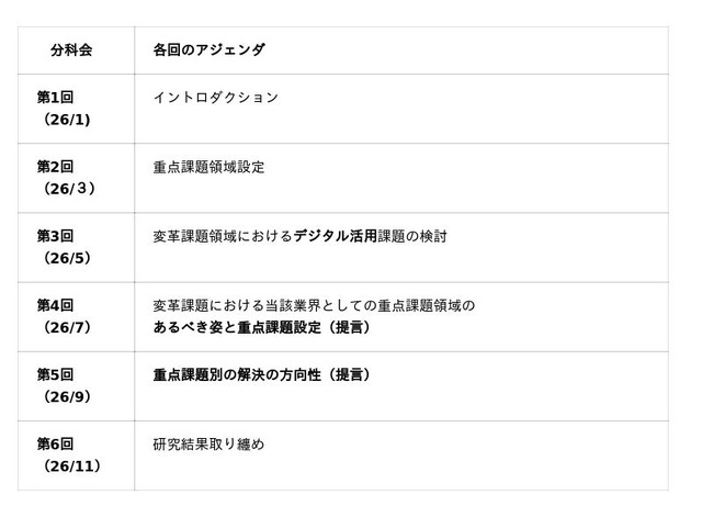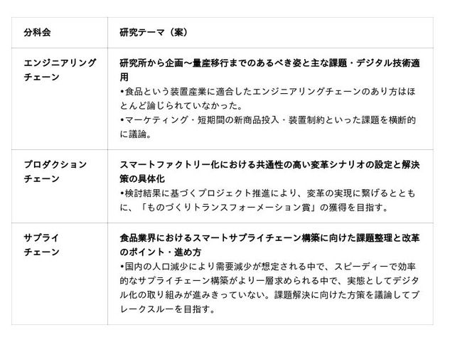 5~6社で構成される3つの分科会を設置