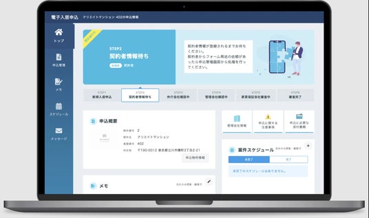 不動産管理会社様の手間とコストを削減し、入居申込から審査までオンラインで完結できる入居申込システムです。