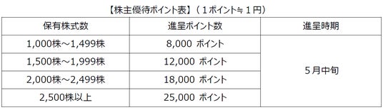 2026年以降、毎年3月末日現在の株主名簿に、10単元(1,000株)以上保有する株主様として記載又は記録されること。