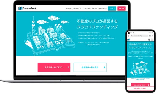『OwnersBook』は、「オンライン・1口1万円・プロ向け案件・不動産投資」というコンセプトでプロ向け不動産投資領域を個人に開放し、不動産投資の醍醐味を味わって頂くとともに、皆様と一緒に新しい不動産投資市場を創造するサービスです。