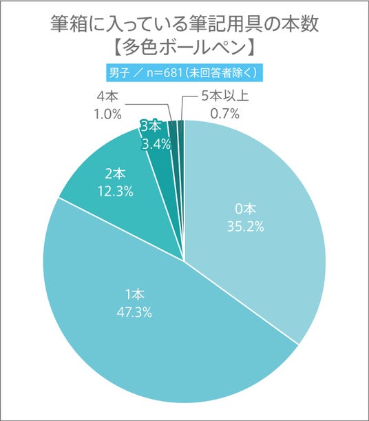 男子で最も多かったのは“1本”で、5割近くの高校生が筆箱に多色ボールペンを1本入れていることがわかりました。