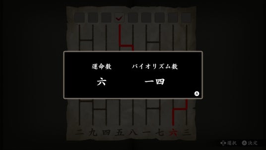 運命数は、本編中に与えられる「1~9」の無作為な数。