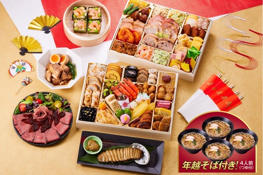 超特大お重に和洋中華風の具材がたっぷりつまった豪華なおせちです。年越しそばや別添品がたくさんついていて家族がたくさんな方に喜ばれるおせちです。