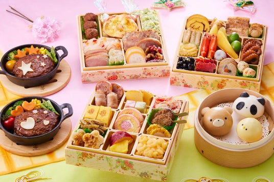 三種の野菜のミートパテ/卵のスフレ風/花咲サラダ/ベーコンチーズオードブル/マーブルチーズいちご&キウイ/焼きつくね串/寿印厚焼き玉子/いちごとミルクのロールケーキ/焼きとうもろこしテリーヌ/わかさぎのうす甘煮/チーズ入り花の焼きかまぼこ/さつまいも甘露煮/ぷちぷり海老サラダ