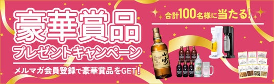 カクヤスネットショッピングのメルマガ会員の方を対象に創業祭特設ページにあるフォームから応募するだけで、サントリーの山崎12年をはじめとする様々な豪華賞品を合計100名様にプレゼント!