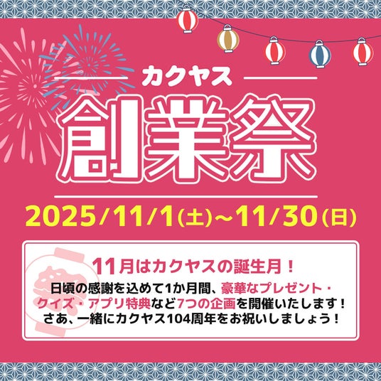 カクヤス創業祭では、創業日である11月1日から30日までたくさんのイベントを開催中です!「なんでも酒やカクヤス」の104周年創業祭にぜひご参加ください!