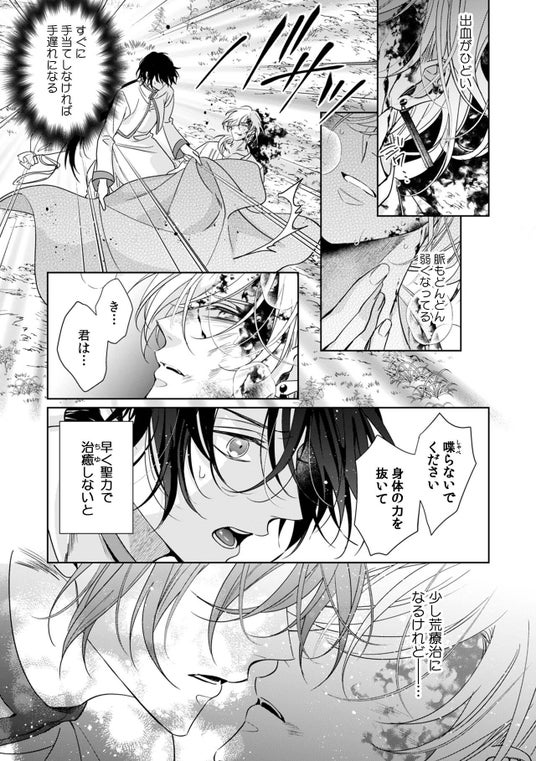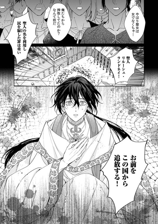 「お前をこの国から追放する!」代々《聖女》を輩出してきたランドネイ家。長い歴史の中でも初めて男の聖女《聖人》として力を授かったリルは、歴代の聖女たちとは違い、漆黒の髪と黄金の瞳を宿していた。外見や性別の違いから気味悪がられ、国中から後ろ指を刺される日々を送るリル。それでも皆のためにと献身的に仕事をこなしてきたが、濡れ衣を着せられ国外追放されてしまう。失意の中、怪我をして倒れていた美青年を聖力を込めたキスで助けると、なんとその人物は隣国の王子・ウォージン殿下で――!?