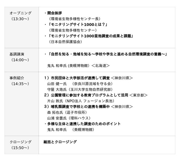 主 催:環境省生物多様性センター・(公財)日本自然保護協会