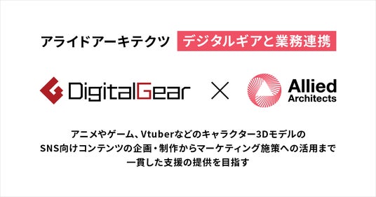 データとクリエイティブの力でマーケティングコミュニケーションを設計し、企業のマーケティングAXを支援するアライドアーキテクツ株式会社(本社:東京都渋谷区、取締役社長:村岡弥真人、証券コード:6081、以下「当社」)は、アニメやゲーム、Vtuberなどのキャラクター3Dモデルや背景の制作、2Dのアニメーションやイラストの制作事業を展開するデジタルギア株式会社(東京都港区、代表取締役社長:漆崎洋一、以下「デジタルギア」)との業務連携を開始しました。これにより、両社は、2D・3Dのアニメーションを活用したSNS向けのコンテンツの企画・制作から、マーケティング施策への活用まで一貫した支援体制のご提供を目指し、協力してまいります。