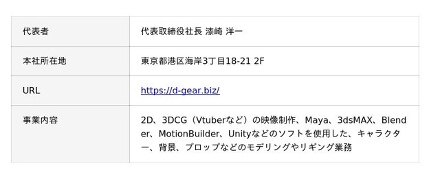 お客様を起点に“ギア”を回すことで、感動とワクワクに貢献します。デジタルギア株式会社は、2023年に設立されたデジタルエンターテイメント制作会社です。アニメやゲーム、Vtuberなどのキャラクターや背景の3Dモデル制作をはじめ、イラストや2DCGアニメーションの制作も手がけています。「Drive your Digital」を掲げ、クライアントのニーズに応じた最適なクリエイティブを提供することを使命としています。3Dキャラクターのモデリングやモーション収録、イラスト制作、Live2D、Spineを用いたアニメーションなどをワンストップで対応可能な体制を強みとしています。エンジニア、ディレクター、デザイナーが連携し、企画から制作まで一貫したサービスを提供しています。今後は、Vtuberのタレントマネジメントや広告代理事業にも展開し、業界をリードするマルチクリエイター企業を目指します。
