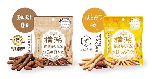 珈琲は1859年の開港直後から横浜港に輸入され、珈琲文化は横浜から始まったとも言われています。「横濱お米かりんと 珈琲」は、1957年に横浜で創業した「三本珈琲」のコーヒーを使用し、コーヒー好きにも自信を持っておすすめできる味わいに仕上げました。