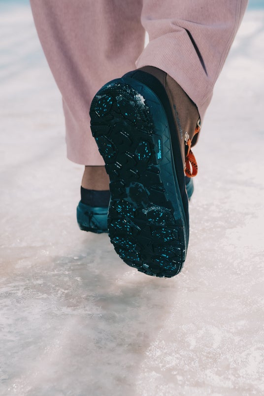 オムニグリップアイス氷上や雪上でしっかりとグリップ力を発揮し、滑りにくい。独自設計の合成繊維配合アウトソール。