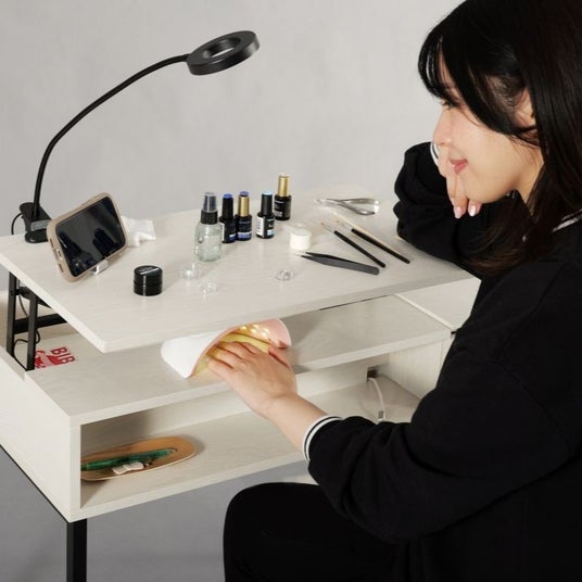 ネイルには、手元での細かく繊細な作業がつきもの。そんな作業を少しでも快適に行えるよう、工夫を詰め込んだセルフネイルデスクです。
