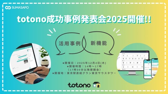 不動産賃貸マーケットに対してテクノロジーを活用したサービスを提供する株式会社スマサポ(本社:東京都中央区、代表取締役社長CEO:小田 慎三、証券コード:9342、以下 スマサポ)は、昨年も大変ご好評いただきました、入居者アプリ「totono」の成功事例発表会を、本年も開催することをお知らせいたします。