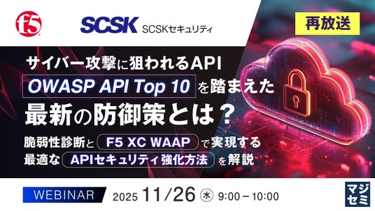本セミナーは、「OWASP API Top 10」に対する具体的な防御策を解説します。また、多くの顧客が抱えるセキュリティ課題を解決したSCSKセキュリティのAPIに対する脆弱性診断の実績や実際に検出された脆弱性の事例を踏まえてご紹介します。さらに、APIセキュリティを強化する最適なソリューションとして「F5 XC WAAP(Web Application and API Protection)」を提案し、その活用方法を詳しく解説します。