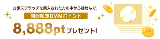 対象のスクラッチを購入された方の中から抽せんで、各スクラッチにつき8名様ずつ、お一人あたりDMMポイント「8,888pt」をプレゼントいたします。