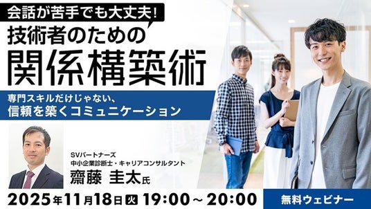 株式会社クリーク・アンド・リバー社(C&R社)は11月18日(月)、技術者の方を対象に無料のオンラインセミナー「会話が苦手でも大丈夫!技術者のための関係構築術 ~専門スキルだけじゃない、信頼を築くコミュニケーション~」を開催します。