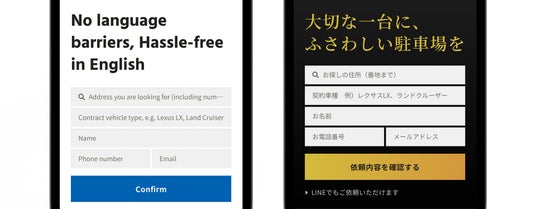 - 手続きをワンストップでサポート日本語で探す手間も、複雑な日本の契約の煩わしさもすべてお任せ。 条件に合った駐車場を瞬時に見つけ、 契約までワンストップでサポートします。来店や煩雑な書類作成は不要です。