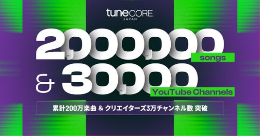 音楽デジタルディストリビューションサービスを手がけるチューンコアジャパン株式会社(本社:東京都渋谷区、代表取締役社長:野田威一郎)は、この度、運営するサービスTuneCore Japanを通じて音楽ストリーミングサービスを含む音楽配信ストアに配信リリースされた楽曲数が、サービス開始から累計で200万曲を突破、また2023年10月にローンチした動画クリエイター向けサービス「TuneCore クリエイターズ」に登録いただいているYouTubeチャンネル数が3万チャンネルに達したことを発表いたします。
