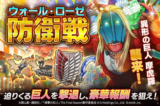 2025年11月5日(水)より期間限定でウォール・ローゼ防衛戦に異形の巨人摩虎羅が襲来!仲間と力を合わせて豪華報酬を手に入れよう!