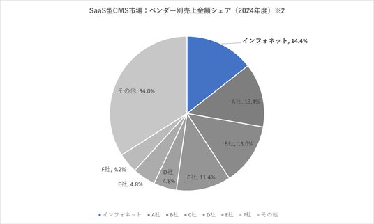 ※ITR「ITR Market View:ECサイト構築/CMS/SMS送信サービス/電子請求書サービス/電子契約サービス市場2025」SaaS型CMS市場:ベンダー別売上金額シェア(2015~2024年度実績)