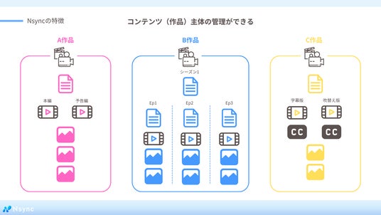Nsyncは、バラバラに管理されがちな情報をすべて「作品」をハブとして紐付けます。