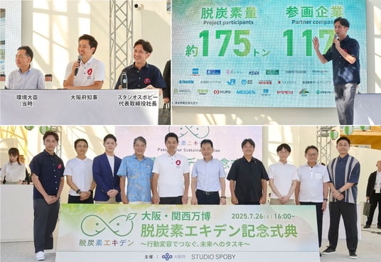 これまでに愛知・大阪・兵庫・京都・福岡など10都道府県・政令市で導入が進み、導入企業は120社を超えました。大阪・関西万博では知事や当時の環境大臣を招聘した実績もあり、行動変容を通じて脱炭素を推進する取り組みは、すでに全国的なスタンダードとなりつつあります。