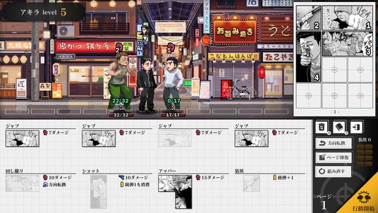 本作は、「マンガ」と「戦術パズル」と「ローグライク」が融合した独自の「マンガ構築バトル」システムを採用しています。毎ターン配られる「コマ」をページに配置することでコマンド入力が行われ、行動が決まります。
