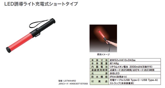 ●乾電池タイプより軽量の充電池内蔵タイプなので、長時間の誘導作業でも疲れにくい軽さです。