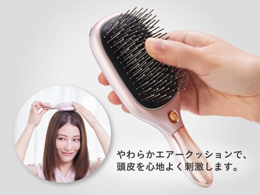 やわらかいクッションで頭皮を心地よく、メタルピンでひんやり気持ちよく頭皮を刺激します。