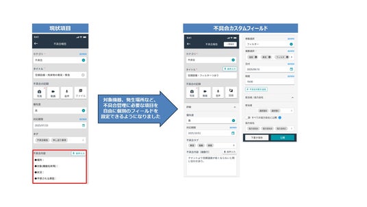 不具合情報のAI利活用/分析環境を整備するための手段として、今回のアップデートでは、不具合報告時に任意の項目を設定できる「カスタムフィールド機能」を実装しました。これにより、報告内容を構造化・定型化し、現場の入力作業に過度な負担をかけることなく、分析に活用できるデータを蓄積できるようになります。