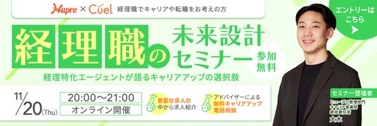 本提携により、CuelCollegeの教育プログラムを修了した方や、CuelNextを通じてキャリアアップ・キャリアチェンジを目指す方々は、ヒュープロの専門コンサルタントによる個別面談と、士業・管理部門に特化した豊富な求人の中から、その方のスキルやキャリアプランに合致した企業を紹介される機会が得られます。これにより、CuelCollegeの教育やCuelNextの支援で得た知識・経験を活かし、ヒュープロのサポートを通じて理想的なキャリアを実現できる道が広がります。■業務提携を記念し、初の合同セミナーを開催
