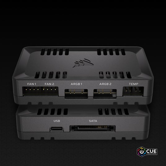 「COMMANDER DUO」は、PWMファンとライティングデバイスを制御できるコントローラーです。各2系統で最大12基のPWMファンと最大100個のLEDをコントロール可能。2つの温度モニターセンサーを備えており、統合管理ソフトウェア「iCUE」によるシステム温度のモニタリングにも対応しています。