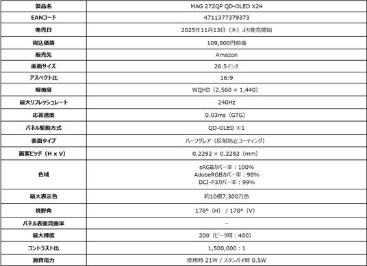https://jp.msi.com/Monitor/MAG-272QP-QD-OLED-X24