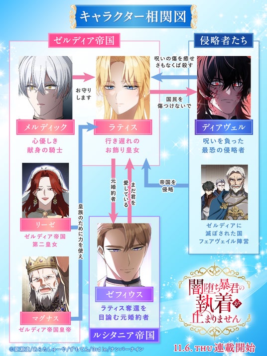 漫画IPパブリッシャーの株式会社ナンバーナイン(本社:東京都品川区、代表取締役社長:小林 琢磨、以下ナンバーナイン)は、『暴君を身ごもる闇堕ち聖女になりました』(SORAJIMA)、『その領収書じゃ、バレますよ ゴミ社員の成敗も、経理の仕事です』(KADOKAWA)の原作を担当する人気作家・夏瀬りく氏が原作を担当する、新作webtoon『闇堕ち暴君の執着が止まりません』を11月6日(木)より配信開始いたします。