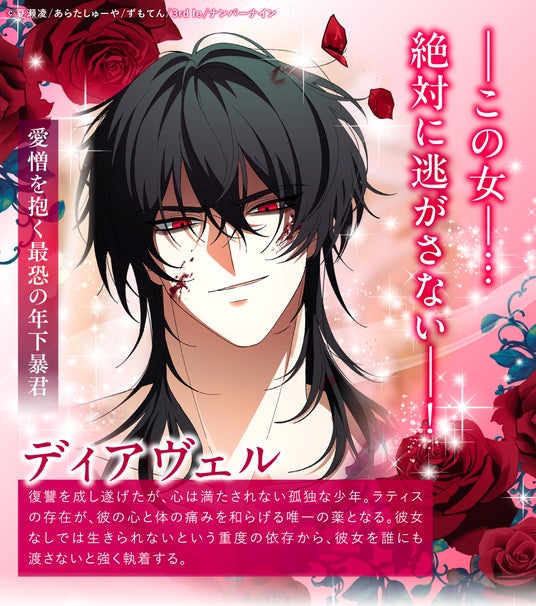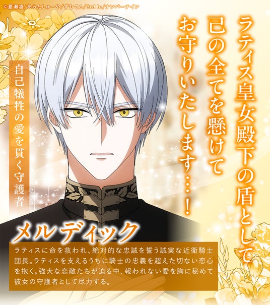 ラティスに命を救われ、絶対的な忠誠を誓う誠実な近衛騎士団長。ラティスを支えるうちに騎士の忠義を超えた切ない恋心を抱く。強大な恋敵たちが迫る中、報われない愛を胸に秘めて彼女の守護者として尽力する。