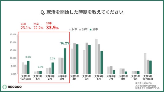 - 就活はさらなる早期化 大学2年の3月以前に開始する学生が前年比10pt増