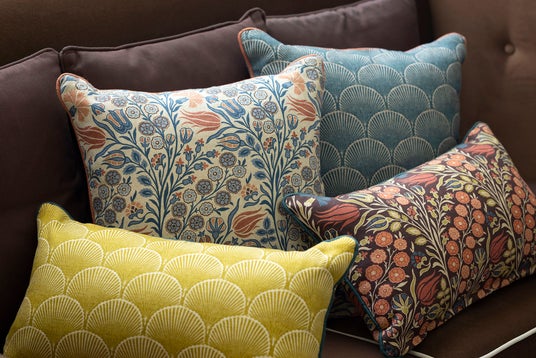 1880年代後半に遡るアーカイブのファブリック断片から着想を得たFanfareは、リバティのプリントテキスタイルの初期時代に敬意を表しています。この洗練された幾何学パターンは、アジア風の扇形モチーフをスカラップ状に配置し、繊細なストライプで装飾されています。結果として生まれたのは、デザインハウスの豊かな遺産を称えつつ、現代のインテリアにも自然に調和する、時代を超えた多用途のコットン・リネン混素材です。