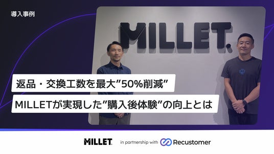 Recustomer株式会社(本社:東京都中央区、代表者:代表取締役 柴田 康弘、辻野 翔大、以下:Recustomer)は、フランス発のアルパインブランド「ミレー」を展開するミレー・マウンテン・グループ・ジャパン株式会社(東京都品川区、代表取締役 ペア・ラスムセン、以下:ミレー)において、Recustomer「返品・交換」「配送追跡」を導入したことをお知らせします。