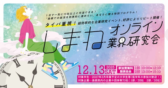 若者の県内企業への理解促進と職業観の醸成を図り、県内就職を促進するため、大学生等に対し、企業の担当者が自社や業界の魅力を発信する「しまねオンライン業界研究会」を開催します。
