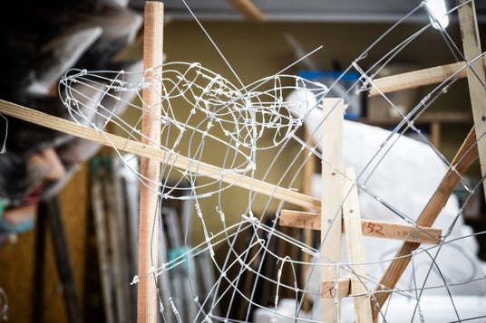 角材で支柱を作り、針金や糸を組み合わせて、紙をはれるように形を整えていきます。昔は針金ではなく、骨組みは竹で作られていたそうです。