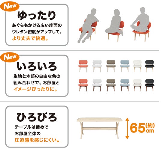 さらに座面のウレタン密度もアップし、座り心地がよくなりました。