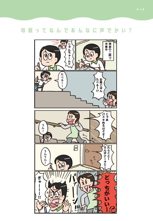 ▼見どころ1.:「ウチの家族もそう!」「わかる!」が止まらない!お母さんのあるあるエピソード(「母親ってなんであんなに声でかい?」より)