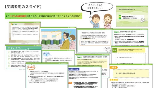事例で学ぶ 環境法令集合研修ツール 受講者用スライドの一部(イメージ)