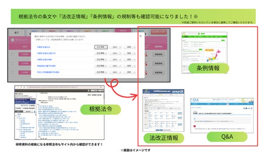 ◆研修に関連する法令情報、関連商品との連携で「法改正情報」や「条例情報」の規制も確認可能!事前準備が簡単になります。