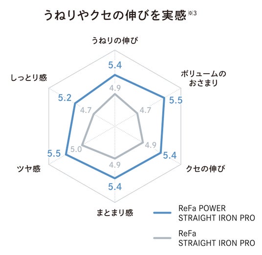 ※ 2 当社評価基準に基づく毛束1回施術直後での毛東ストレート値をReFa STRAIGHT IRON PROと比較(当社調べ)